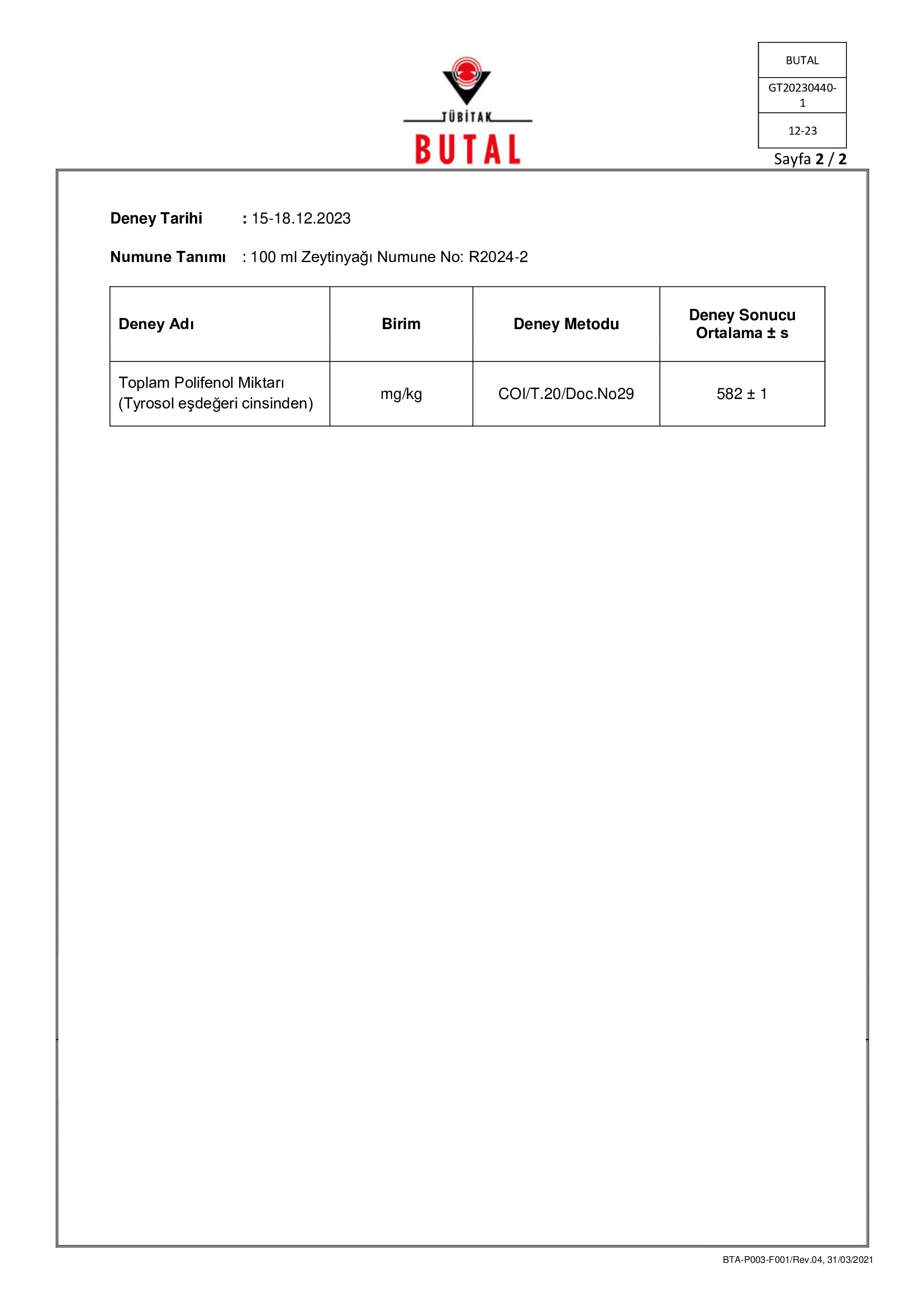 Polifenol miktarı:580 mg/kg